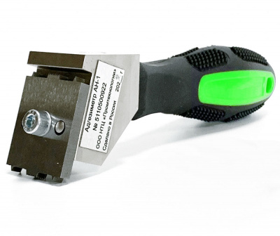 Это надежный и простой механический прибор представляющий из себя прорезиненную ручку с установленным на нее держателем, куда крепится двусторонний нож. Держатель и ножи адгезиметра выполнены из металла, ручка имеет углубления для удобного хвата. Использование двухсторонних ножей позволяет продлить ресурс стандартного комплекта, а возможность их заточки делает ПРОМТ АН-1 долговечным и надежным устройством для контроля адгезии методом надрезов. Адгезиметр не требует специальных навыков для работы с ним и позволяет оперативно контролировать качество покрытий в полевых и лабораторных (цеховых) условиях.
