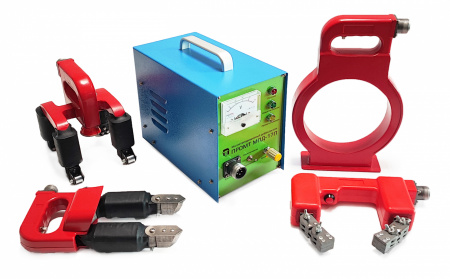 Магнитопорошковый дефектоскоп ПРОМТ МПД-17П предназначен для намагничивания ферромагнитных объектов приложенным магнитным полем переменного тока и дальнейшего размагничивания убывающим магнитным полем при проведении магнитопорошкового контроля по ГОСТ 53700-2009, ГОСТ 56512-2015, ГОСТ ISO 17638-2018 и ГОСТ Р ИСО 9934-1-2011. В основе метода лежит визуальный контроль рисунка созданного ферромагнитными частицами на поверхности намагниченного изделия. Такой рисунок позволяет выявлять мельчайшие поверхностные и подповерхностные дефекты, так как в местах их расположения магнитное поле искривляется, что приводит к скапливанию частиц на этих участках. Намагничивание происходит путем установки выбранного электромагнита подключенного к блоку управления на контролируемую деталь. Благодаря выбору электромагнитов различного типа дефектоскоп позволяет проводить контроль практических любых по форме объектов, включая трубы и лопатки. Блок управления имеет регулировку тока намагничивания в широком диапазоне, есть функция быстрого размагничивания. Является модифицированной версией устройства NOVOTEST МПД-17П.