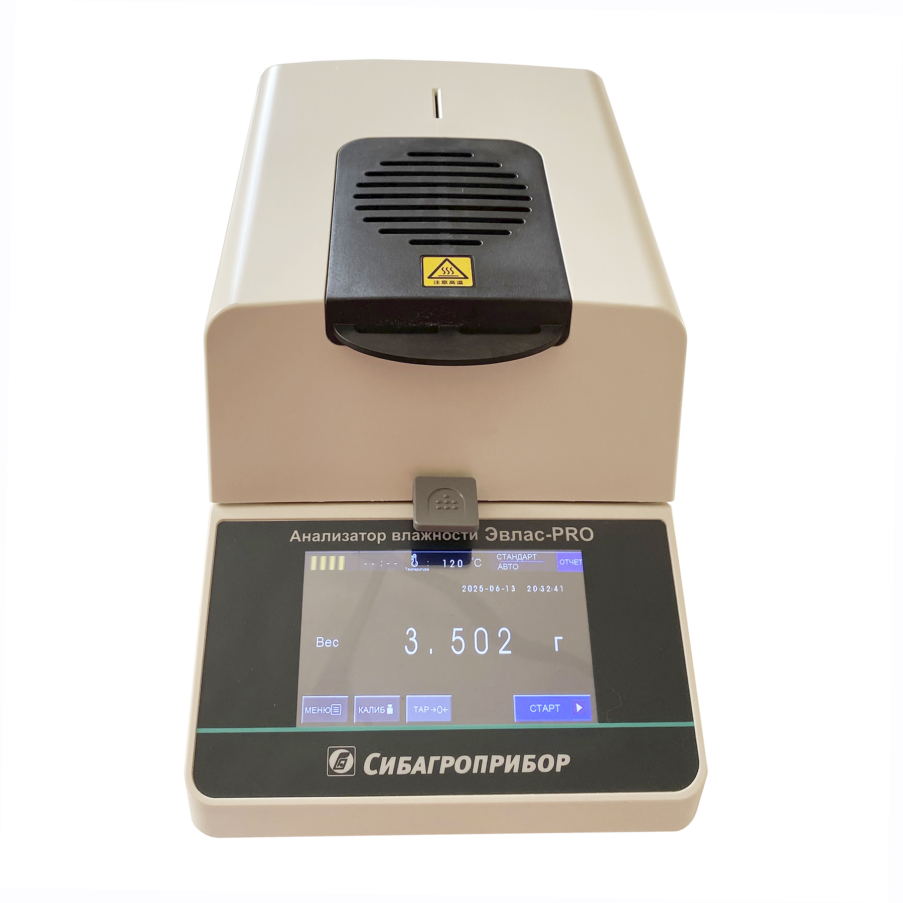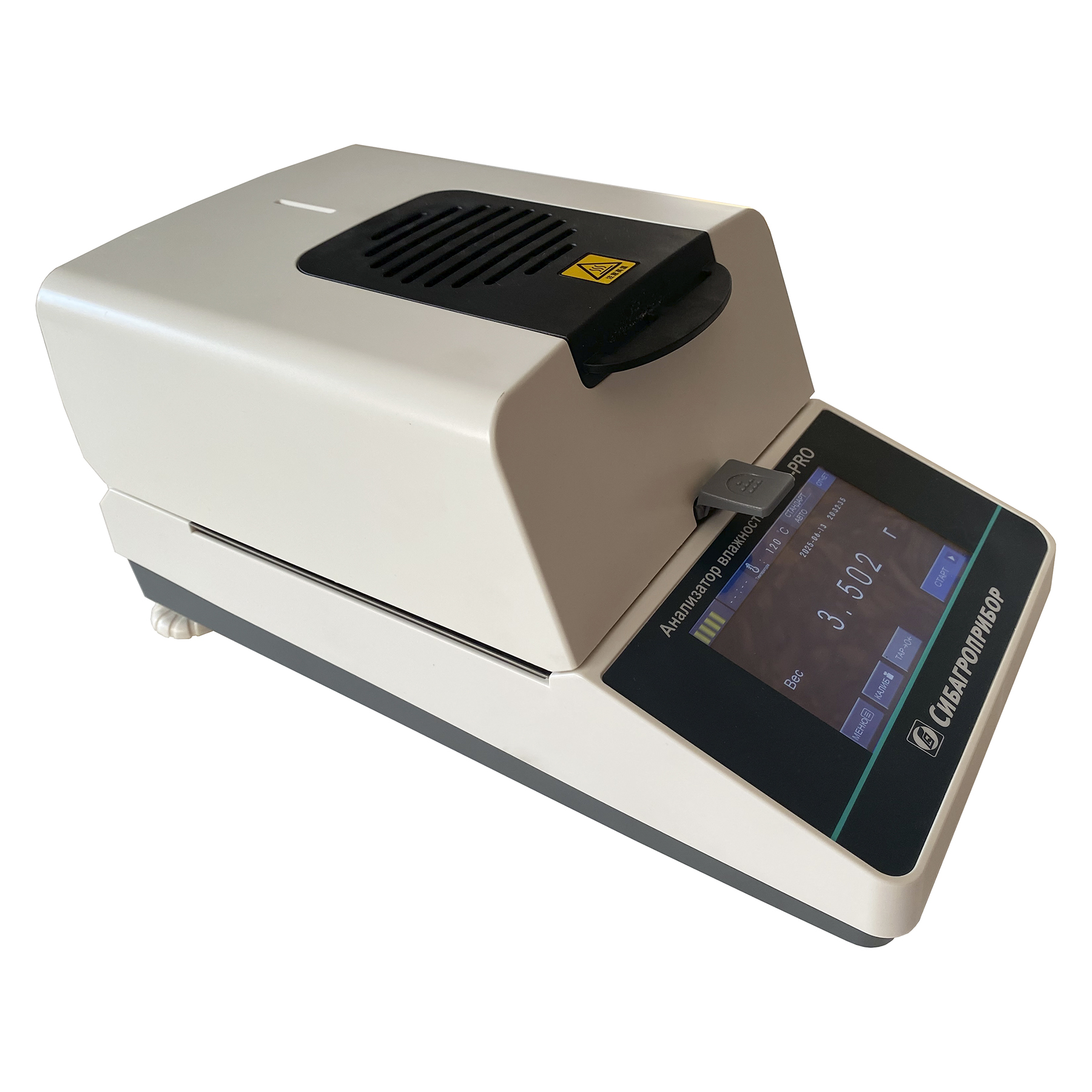 - Вывод на сенсорный экран всей необходимой информации: влажность (%), сухой вес (%), вес (г), а также графика динамики высушивания;