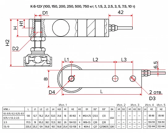 Вес тензодатчика, кг |