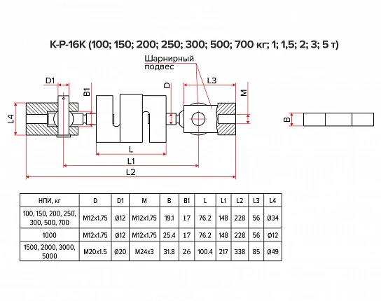 Вес тензодатчика, кг |